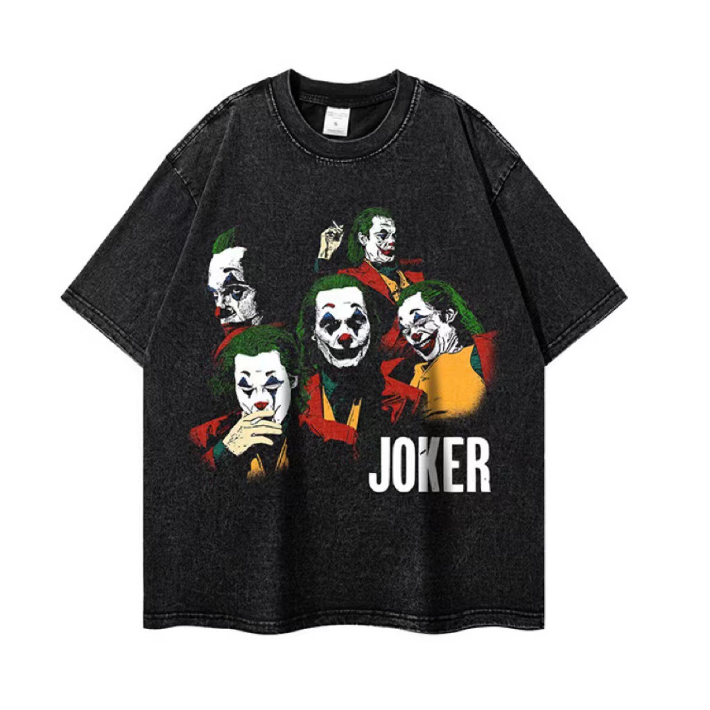 ヨーロッパの国境を越えたアメリカのレトロな古い道化師jokerプリント半袖男性潮牌ゆるいtシャツLAZADA卸売り