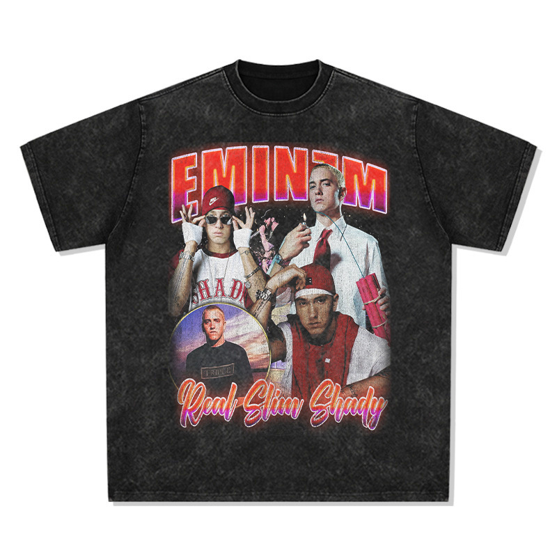 Ebay水洗いして古いtシャツ男2024アメリカのレトロなファッションブランドの流行高級感5点半袖対外貿易卸売り