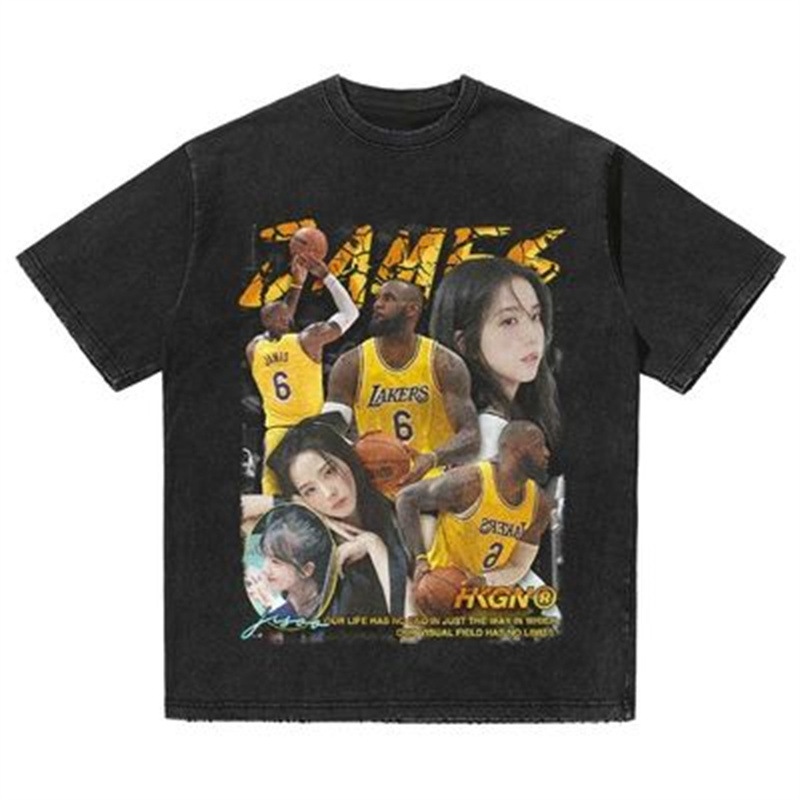 ファッションブランドのアメリカ式の水洗いは古い球星のプリントの5分の袖の男性の純綿のゆったりしている半袖の高い街の復古の潮流のtシャツをします。