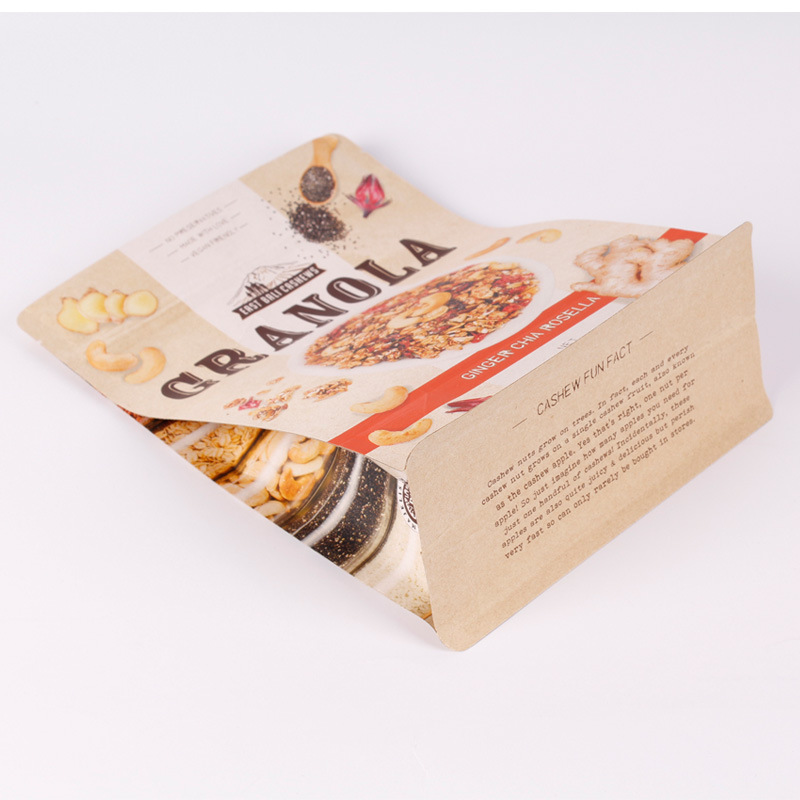 腰果クラフト紙袋アルミ箔八辺封零食袋ナッツ炒めファスナー自封角底袋カラー印刷
