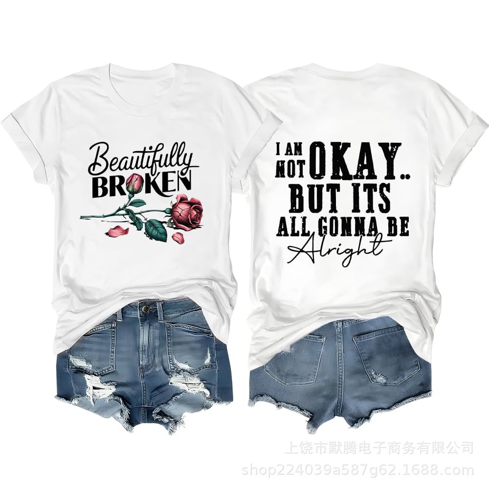 2025国境を越えた欧米風アマゾン速売通の人気女性の丸首綿tシャツトレンド文字プリント