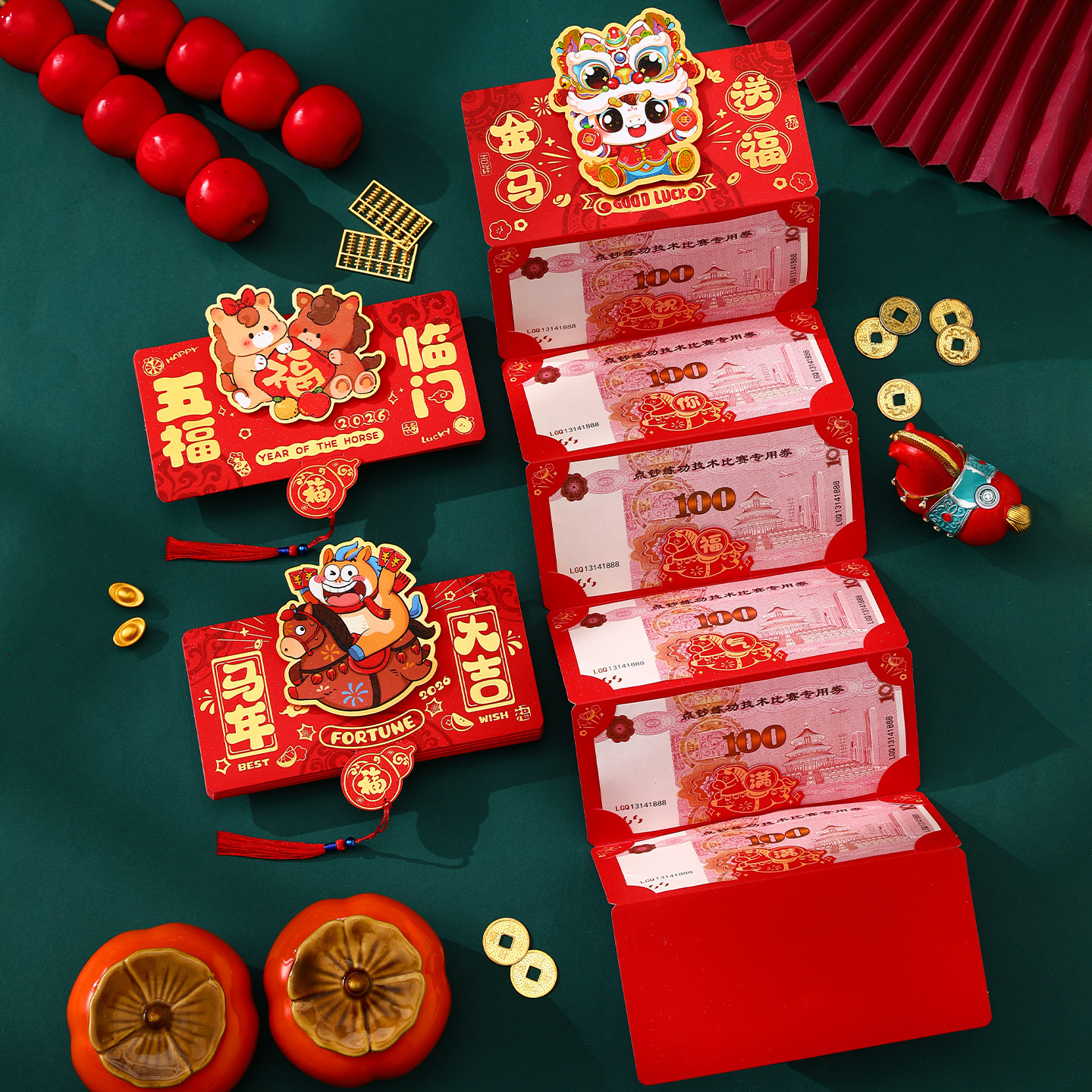 新年折りたたみ式紅包2026年馬年新作春節リースーファン(春節用封筒)新年漫画風高級感クリエイティブお年玉袋