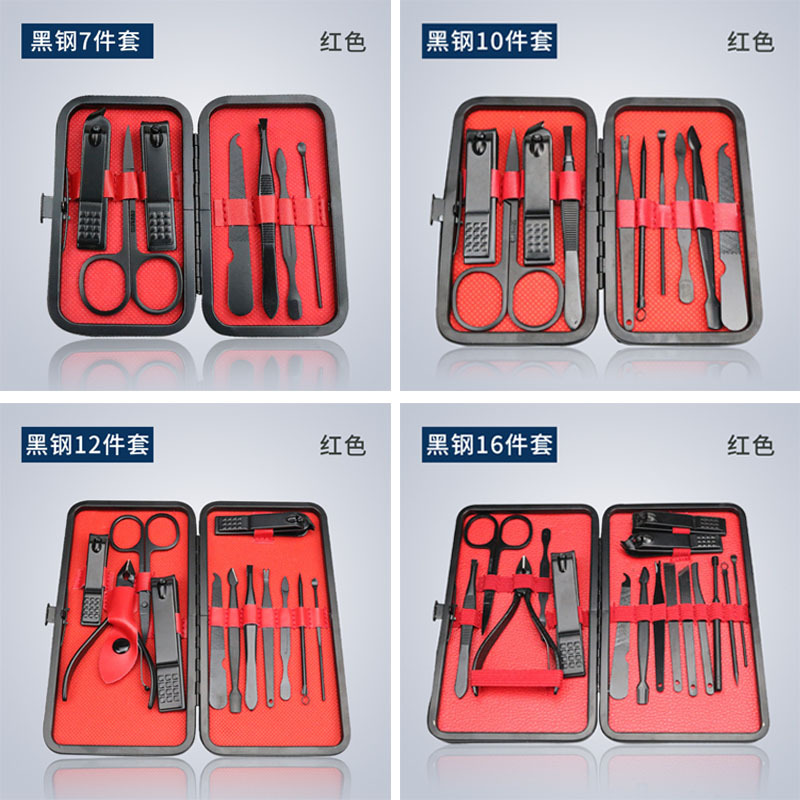 ステンレス爪切り15点セット黒爪切りセット爪切りネイルツール美容セットロゴ