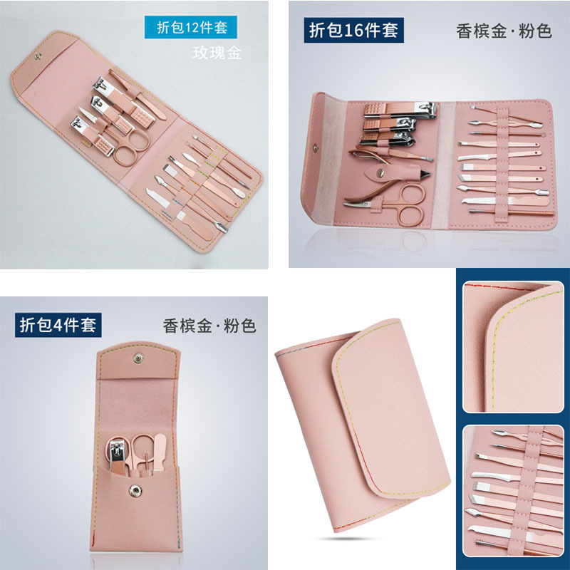 アマゾン国境を越えたステンレス爪刀セット4点セットネイルツールセットpu三つ折り包皮ボタン