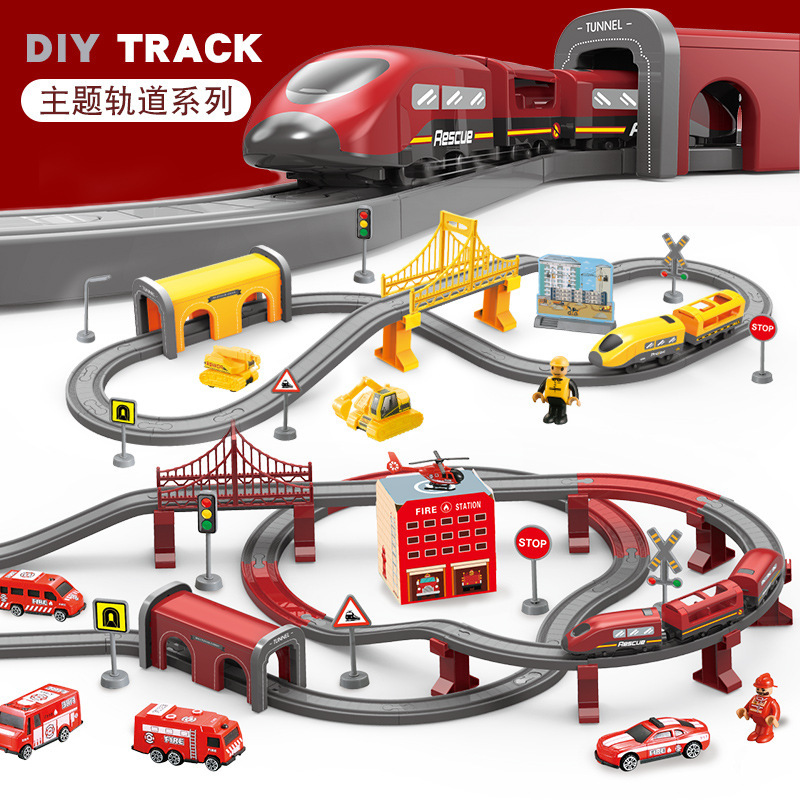 クロスボーダー子供電動サメ軌道車益智百変DIY組み合わせジェットコースター怪獣レースセット玩具