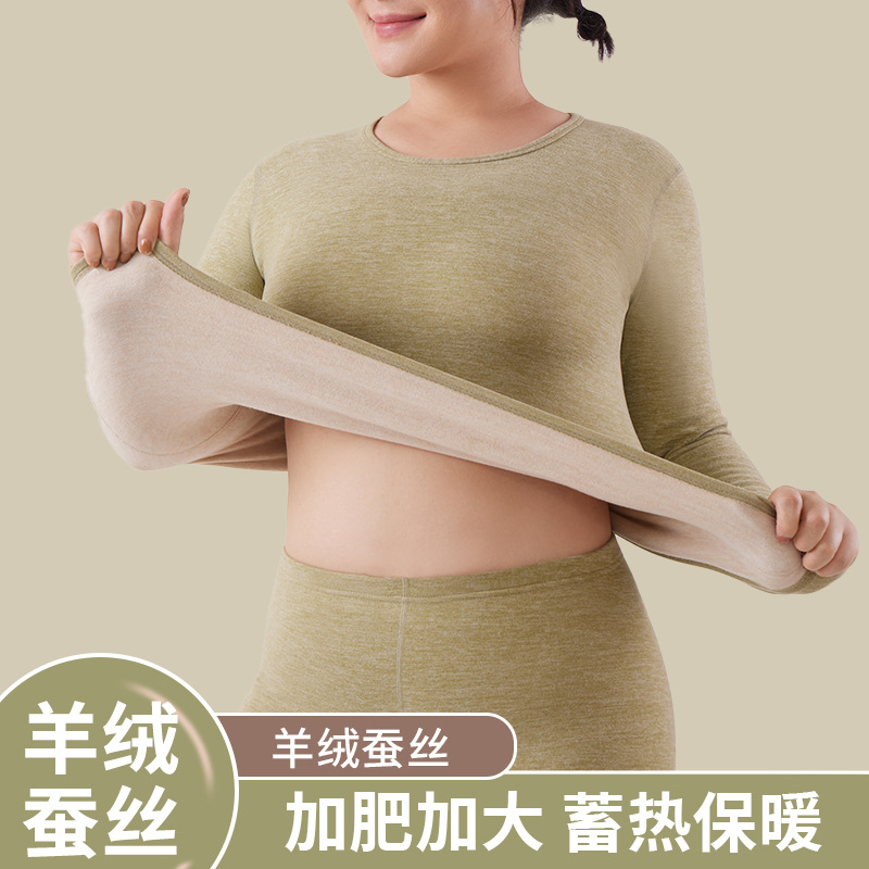 カシミヤシルク保温セット太ったMMの縁にベルベットをつけて保温下着を厚くした秋冬の女性の無痕底セット