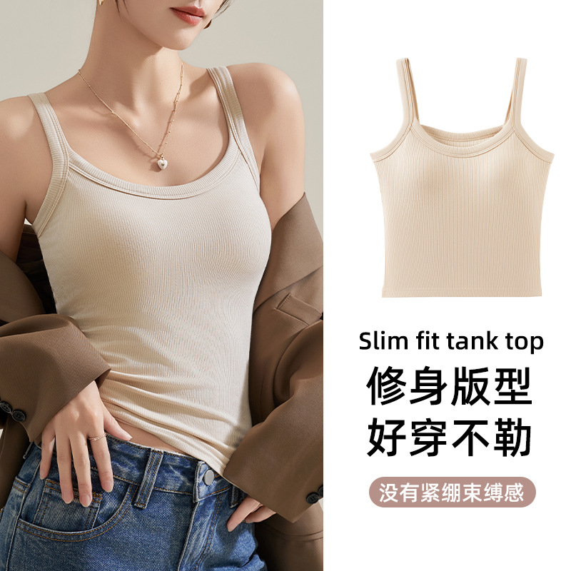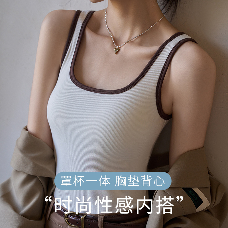 ニットのキャミソールの女性用胸パッド付きのスーツの中に上着を着ます。