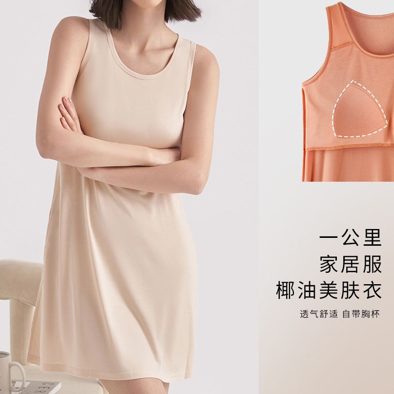 パジャマホーム服ノースリーブtシャツミディアムロング胸付クッションカップ一体式スチールリングなし軽薄通気外着
