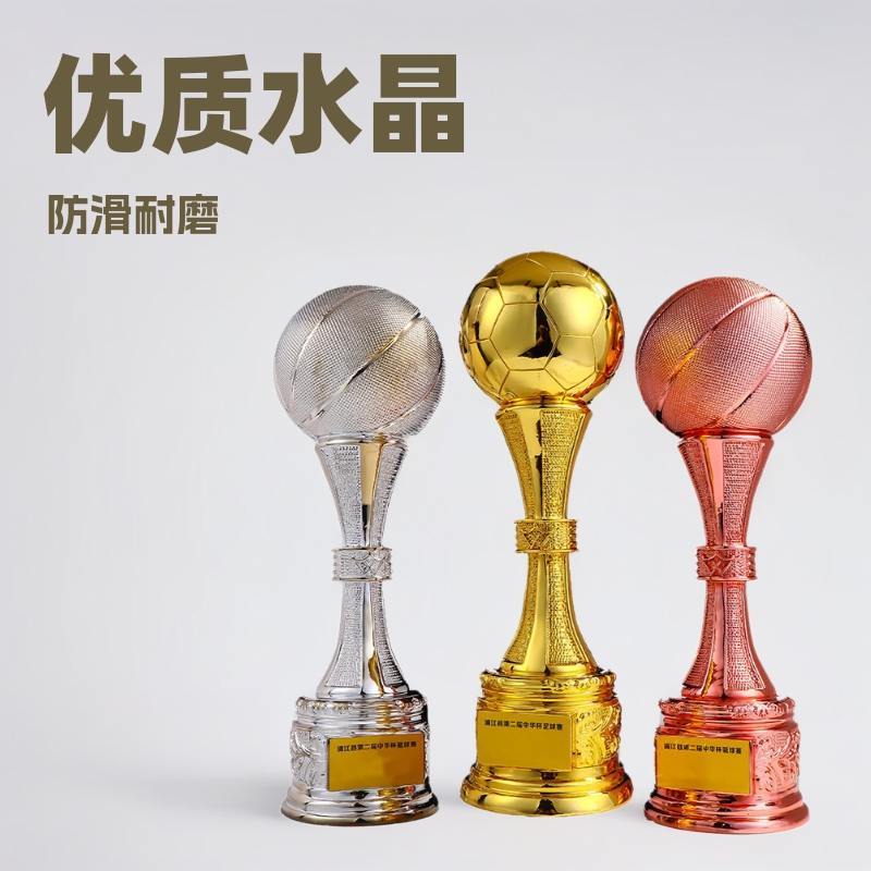 バスケットボールゲームクリスタルトロフィー彫刻サッカーピンポンバドミントンイベント金、銀、銅メダル製造工場
