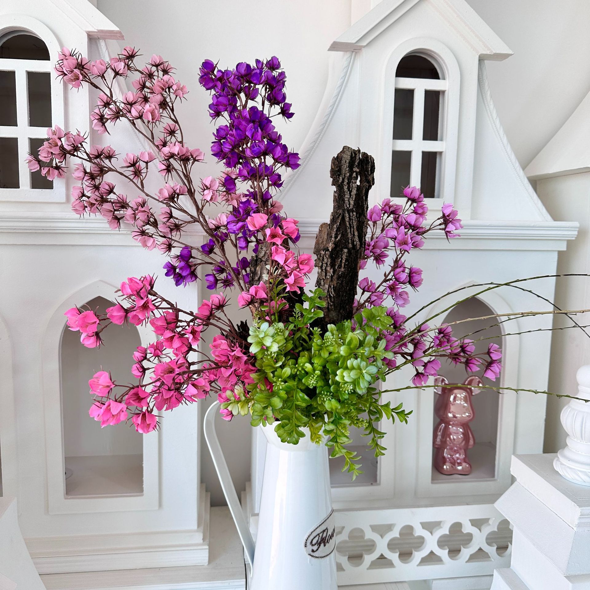 8頭の桃の毛皮の毛の胡蝶蘭の結婚式場は花を配合して結婚祝いの家を飾って客間の食卓を飾って人工の造花を置きます。