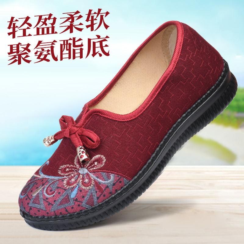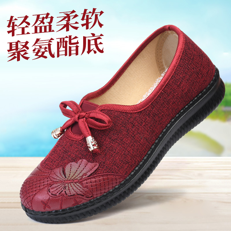 春夏の新型の古い北京の布の靴の女性のタイプの老人の靴の浅い口の平底の柔らかい通気性の快適な中高年のお母さんの靴