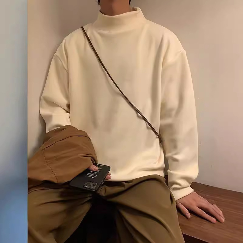 純色のカジュアルな半高襟の長袖のパーカーの男性のシンプルなファッションの秋冬のベルベットの保温の中で底のシャツの上着を掛けます。