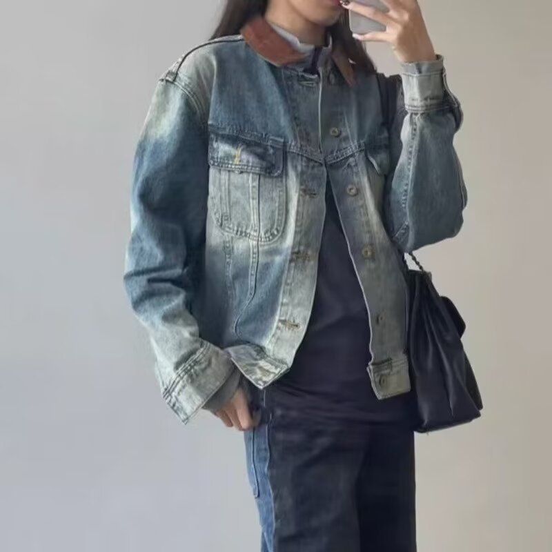 春と秋の新型デザイン感はデニムのコートを染めます。