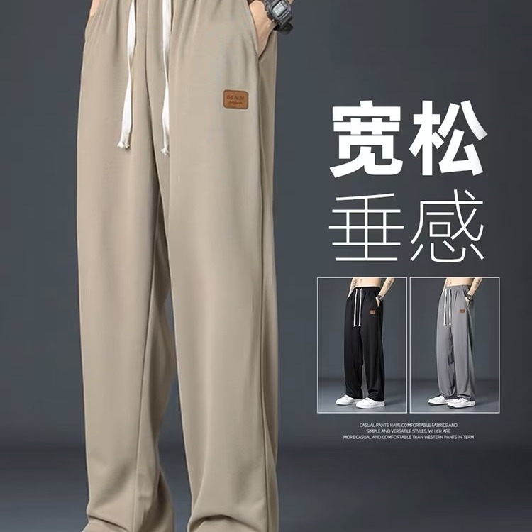 ズボンの男性の夏の薄いタイプのファッションブランドのゆったりしたストレートの広い足のズボンの氷の糸の垂れ下がった感の弾力性の運動のレジャーのズボン