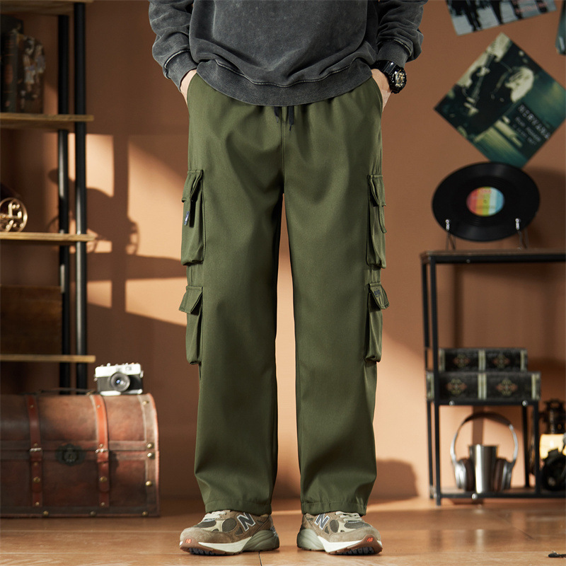 軍緑直筒工装ズボン男性秋の新型高街潮牌多ポケットゆるいカジュアルパンツ