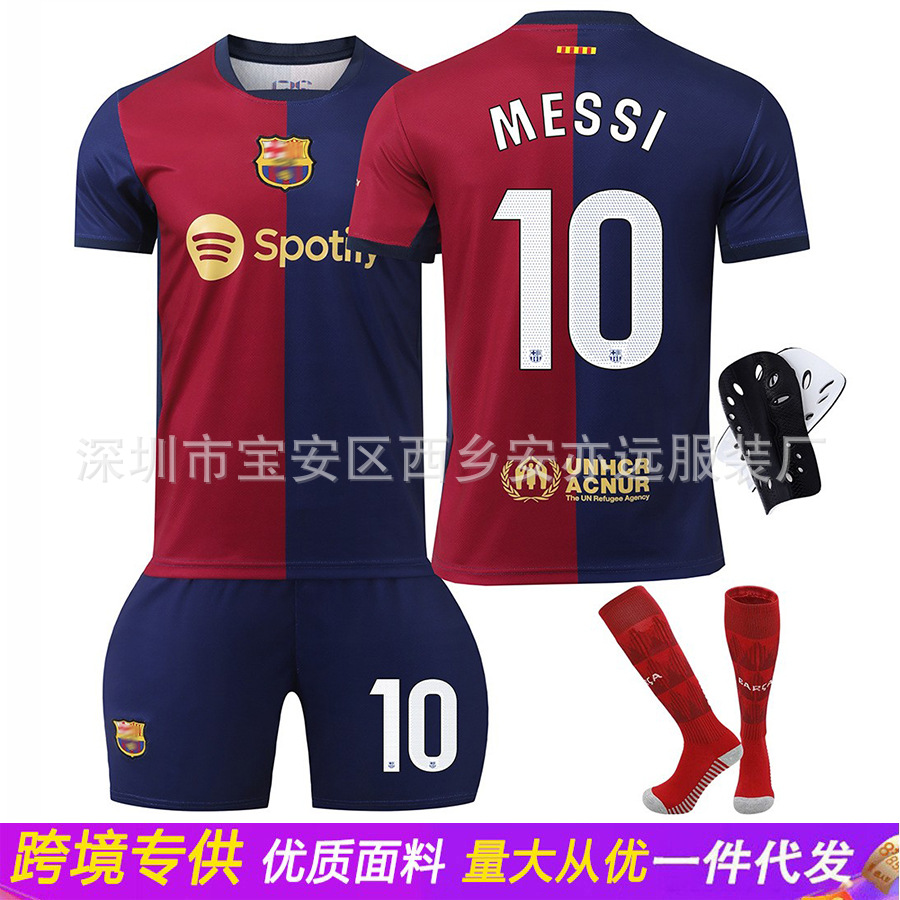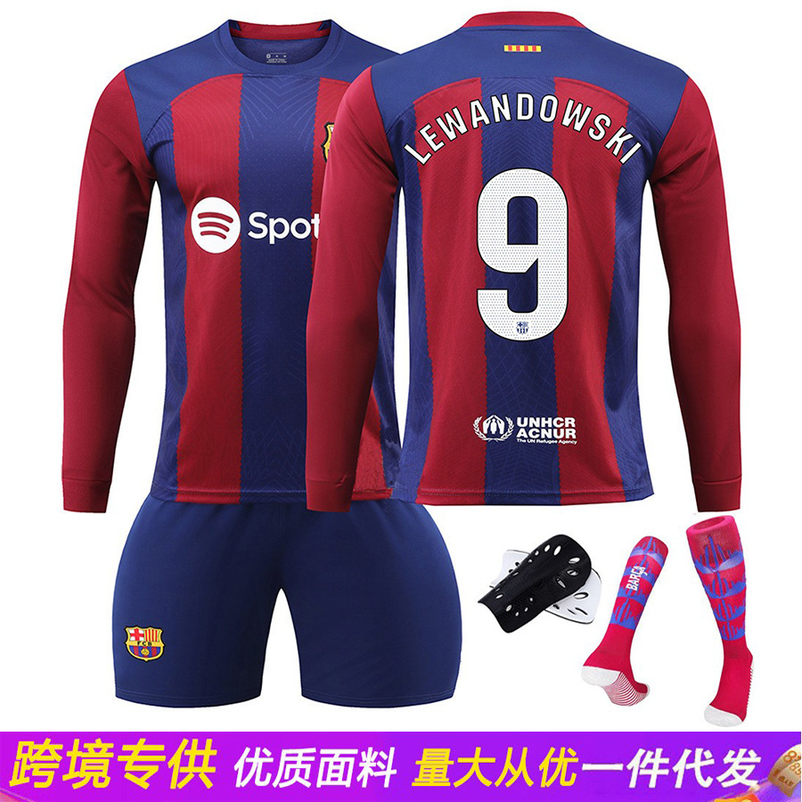 卸売り2425バルサホーム9号レヴァンユニホーム8ペデリ6ガビ10号メッシサッカー服セット男