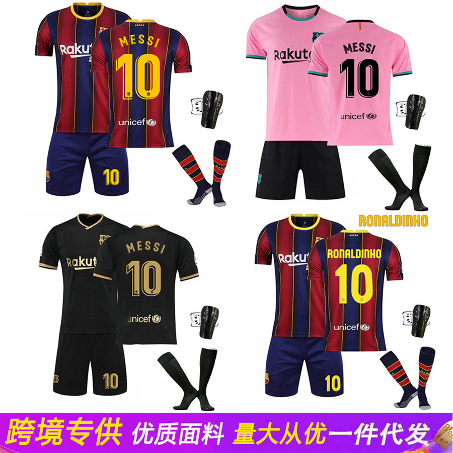 卸売り2021バルサユニフォームの主客場黒ピンク10号メッシユニフォームのサッカー服セットの越境成人