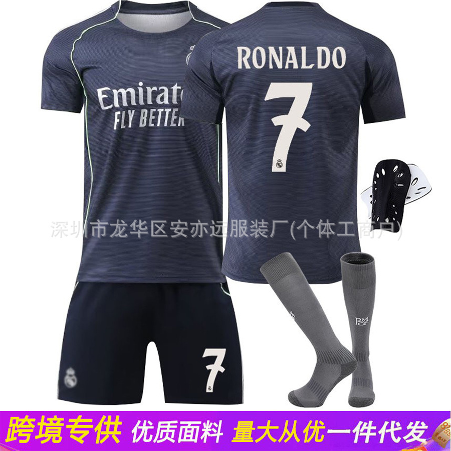 2526レアルマドリードアウェイブラック7号Cロビニユニフォーム9ムバペ5ベリンガム子供用サッカー服セット