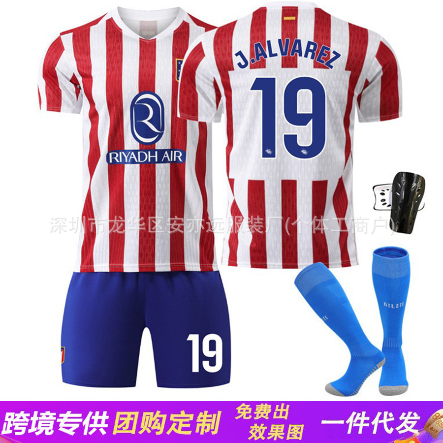 2526 アトレティコ マドリード ホーム 7番 グリーズマン ジャージ 19番 アルバレス 子供用 サッカーユニフォーム セット クロスボーダー