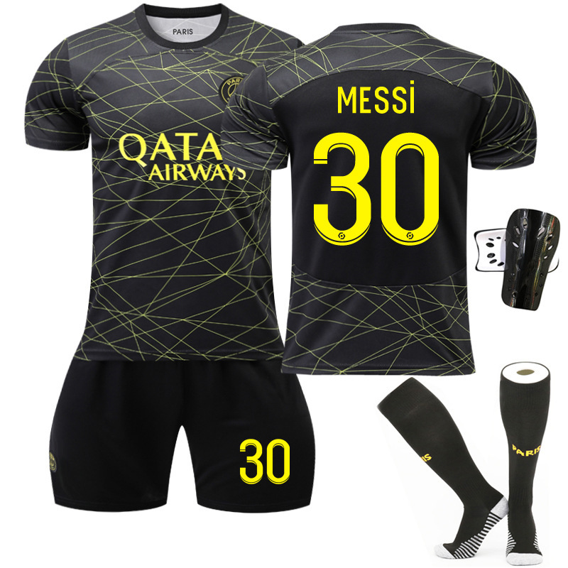 卸売り23パリ三客サッカー服セット30号メッシ10号ネマル7号ムバペブラックゴールド