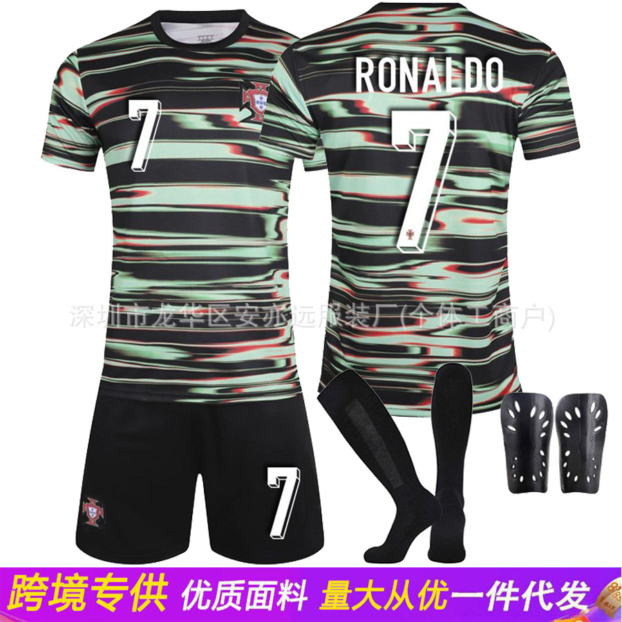 2526 ポルトガル トレーニング迷彩ストライプ No.7 ロナウド ジャージ ロナウド 子供用 大人用 サッカーユニフォーム セット