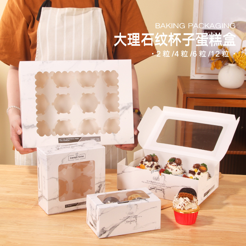 2/4/6/12粒大理石紙コップケーキ包装箱カップケーキ包装箱デザート洋菓子ケーキ箱