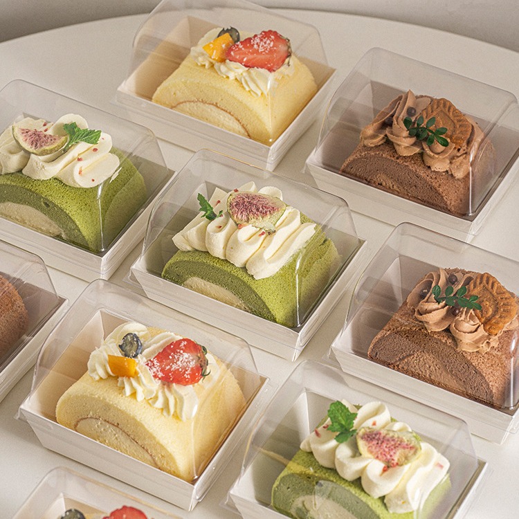 メッシュ赤綿布団ロールアップボックスケーキロールタオルロールボックムースカットデザートボックスケーキ包装ボックス
