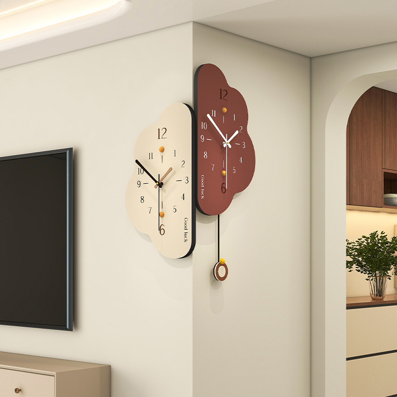 クリエイティブクラウド両面時計ホームコーナー壁時計リビングルーム壁掛けクリームスタイルパンチフリーウォッチミュート