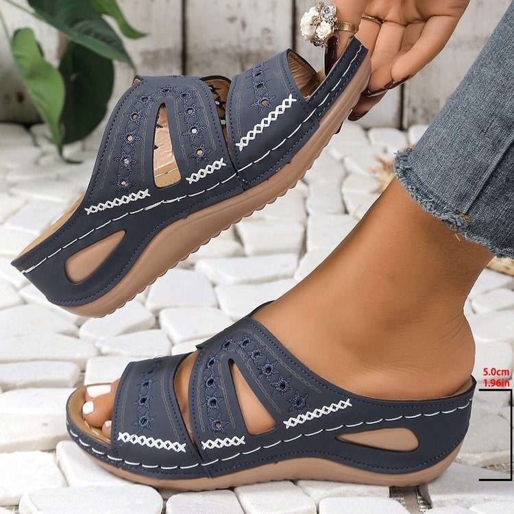 クロスボーダーのサンダルの女性のボヘミアン2025の新型の女性の靴の夏の透かし彫りの坂とドリルのサンダルのレディースショーツ