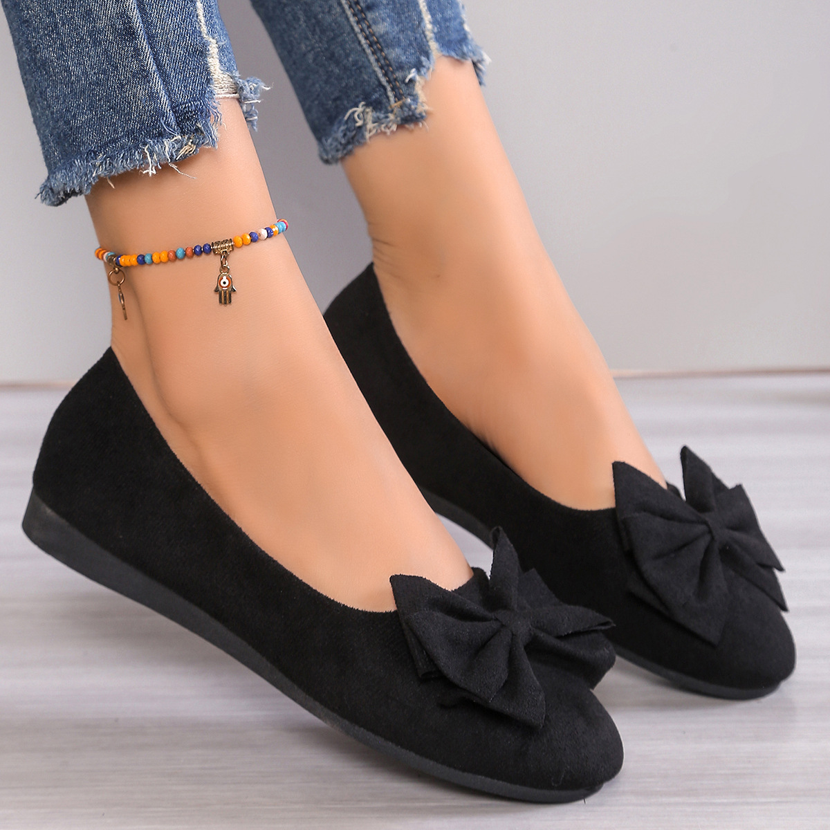2024春秋の新型の柔らかい底のスエードの蝶結びの純色の滑り止めの大きいサイズのカジュアルな百合の浅い靴の布芸