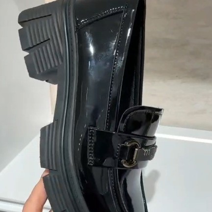 英倫風漆皮の厚い底の小さい靴の女性の2024秋冬の新型の百合は高くなります。