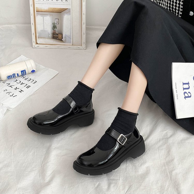 2024春の新作の大きいサイズの女性靴の真珠の一字のボタンは厚い底の純色のカジュアルな日本のメアリー珍の靴の女性を持ちます。