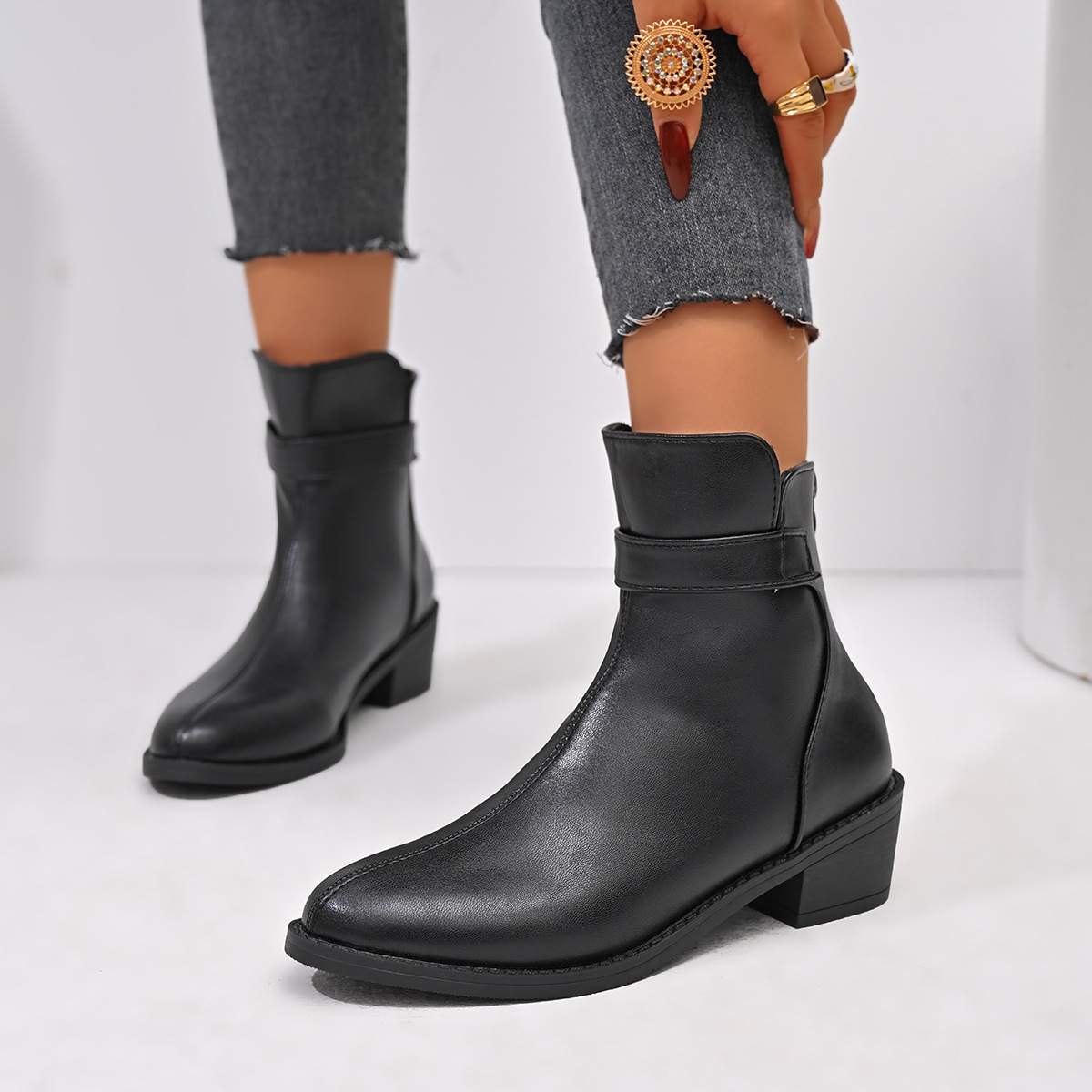 先の尖ったチェルシーの靴の女性の対外貿易の冬の新型の中でマーティンの靴の2024の大きいサイズと越境した後にショートブーツをファスナーします。