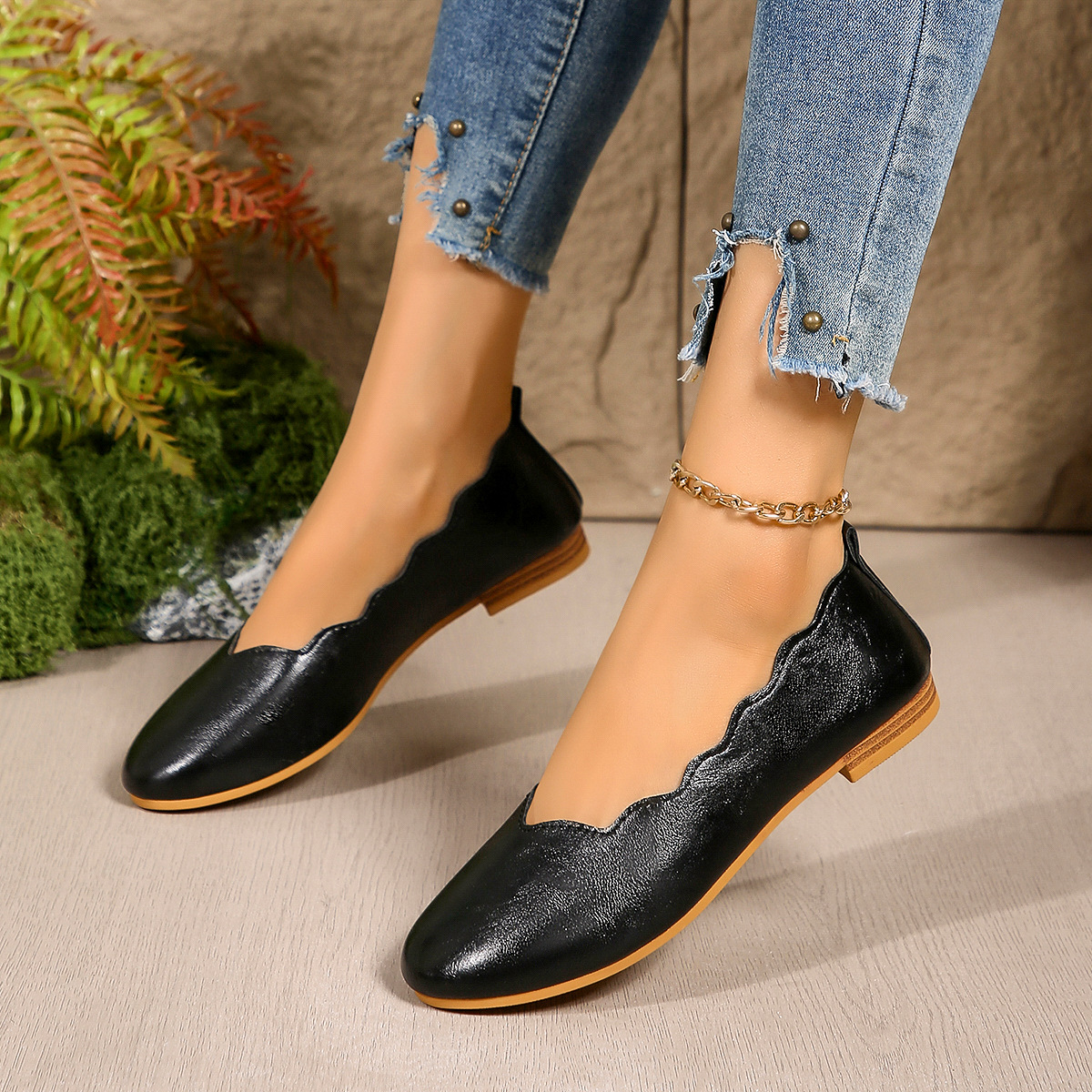 国境を越えた対外貿易の大きいサイズの靴の女性の2024年の夏の新型の欧米の平底の足は豆の靴の43ヤードのwishを漕ぎます。