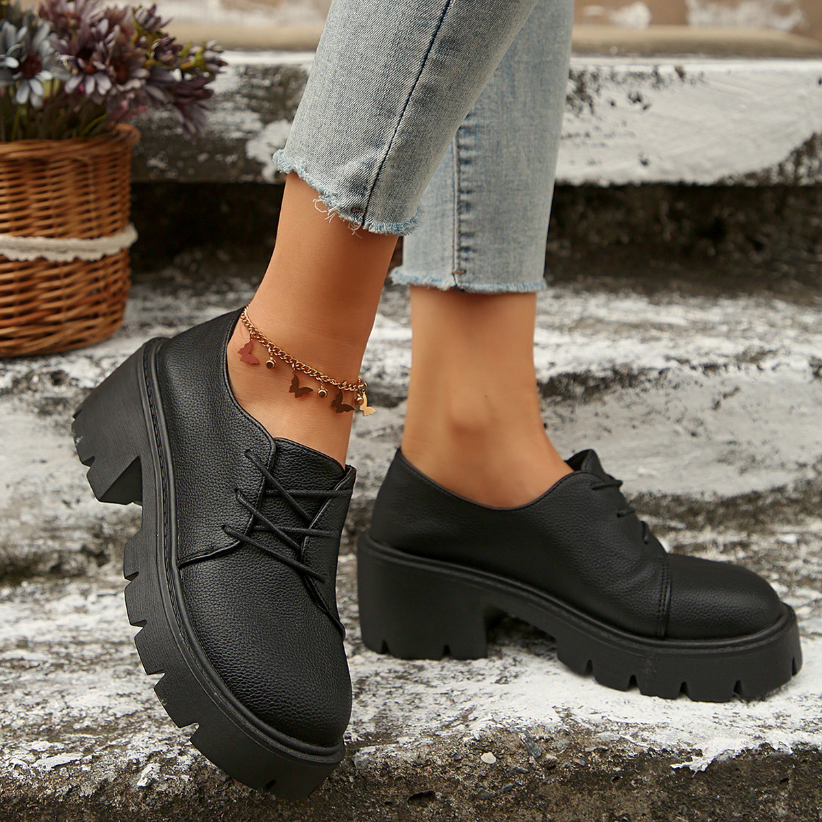 厚い底の楽福の靴の女性の春秋の新型の太いヒールのファッションの百合の快適な英倫風の小さい靴