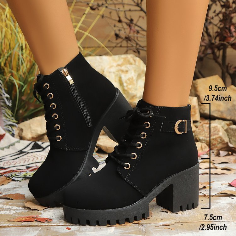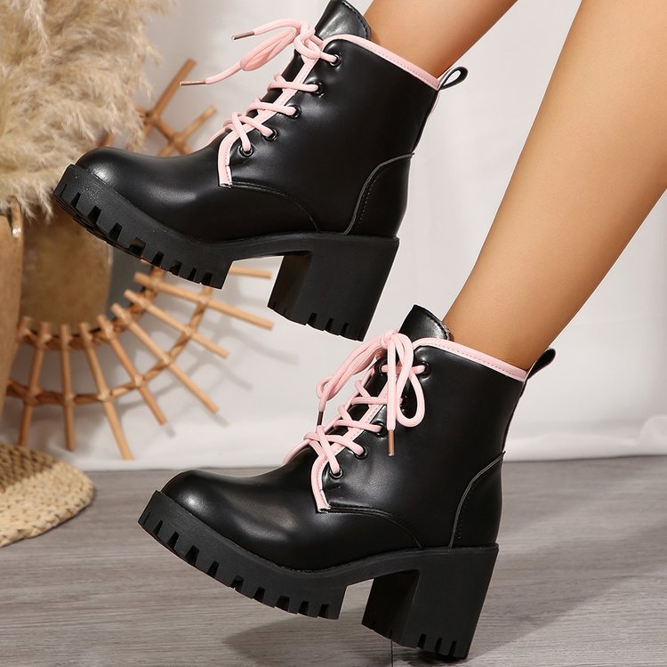 マーティンブーツの女性2024秋冬の新しいハイヒールの太いブーツの女性欧米のひものカジュアルな女性のブーツの代理