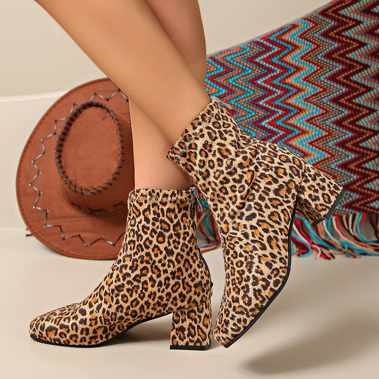 クロスボーダーの大きいサイズのヒョウの紋様のマーティンの靴の女性の2024年の秋冬の新型の欧米の風の中で筒の綿の靴の雪のブーツの女性