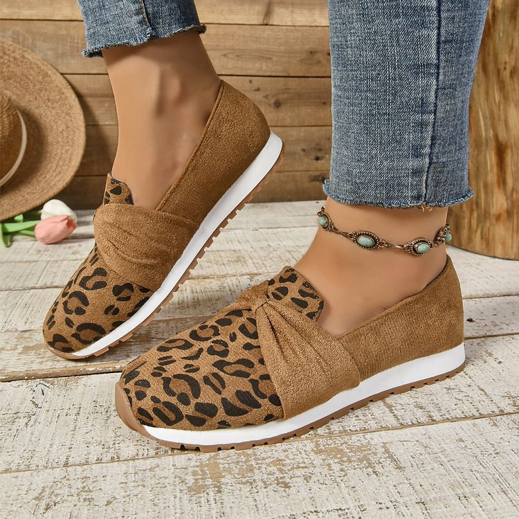 外国貿易の大きいサイズの楽福の靴の女性の2024秋の新型の丸い頭の豹の紋様の坂と足のスエードの金属のボタンの靴をはめます。