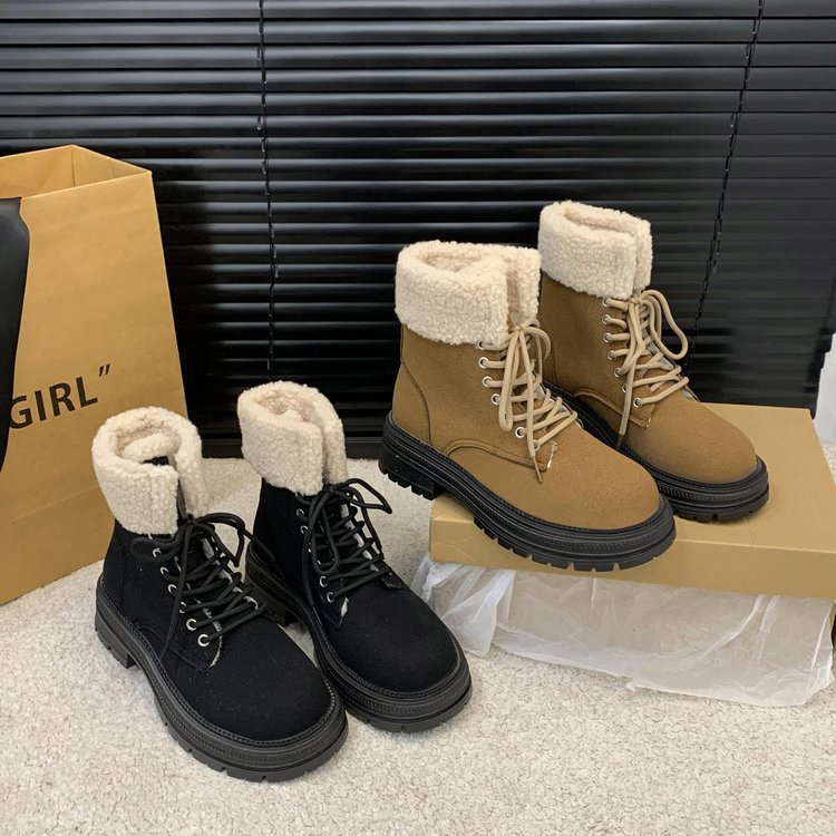 2024秋冬のマーティンブーツと雪地ブーツのショートブーツとベルベットの保温女性綿ブーツの厚い太さと滑り止め女性ブーツ
