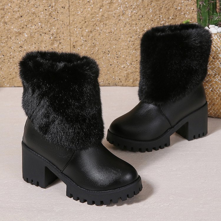 越境秋冬の新型の大きいサイズの丸い頭の女性の靴の欧米の中で筒の百合の滑り止めの保温のファッションの靴のメーカーの卸売り
