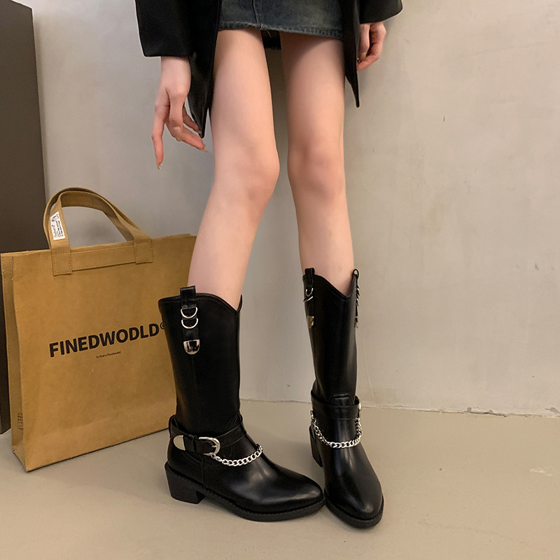 外国貿易の大きいサイズの2024秋冬の新型の尖った山の靴の方と中筒の靴の欧米の太さと復古の女性のブーツ