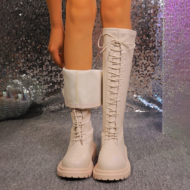 2024年冬の新しい厚い底のマーティンの靴の女性の騎士の厚い底の長靴のひもの気質の白色の高い筒のブーツ