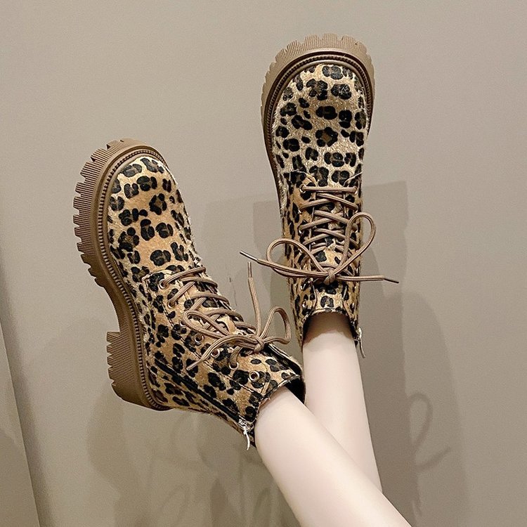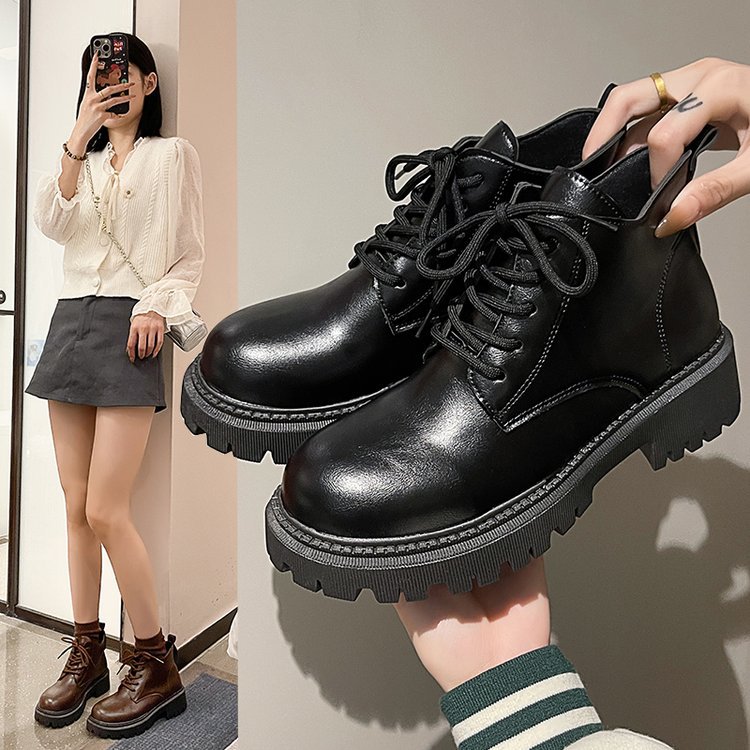 ブーツの女性のショートブーツ2024秋冬の新型の厚い底のマーティンの靴のやせている靴のショートブーツのひもの単靴