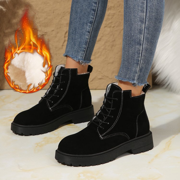厚い底のマーティンの靴の女性の2024年の秋冬の新型の機関車の靴のベルベットのショートブーツの復古はやせている欧米の女性の靴の卸売りを現します。