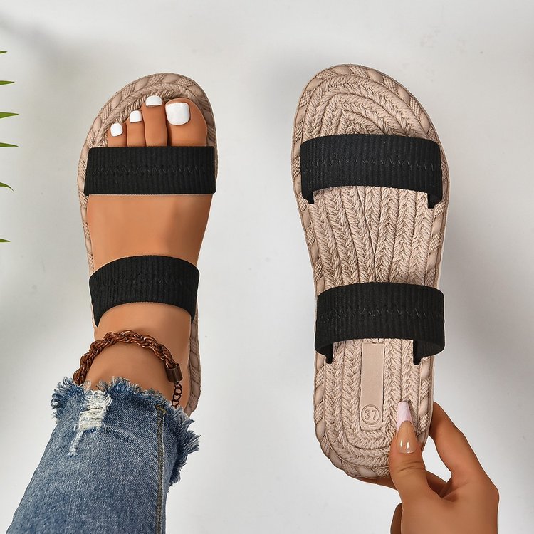 アマゾン2024夏の新型つま先カバーのローマサンダル欧米の外国貿易の大きいサイズのフラットサンダルの女性の現物