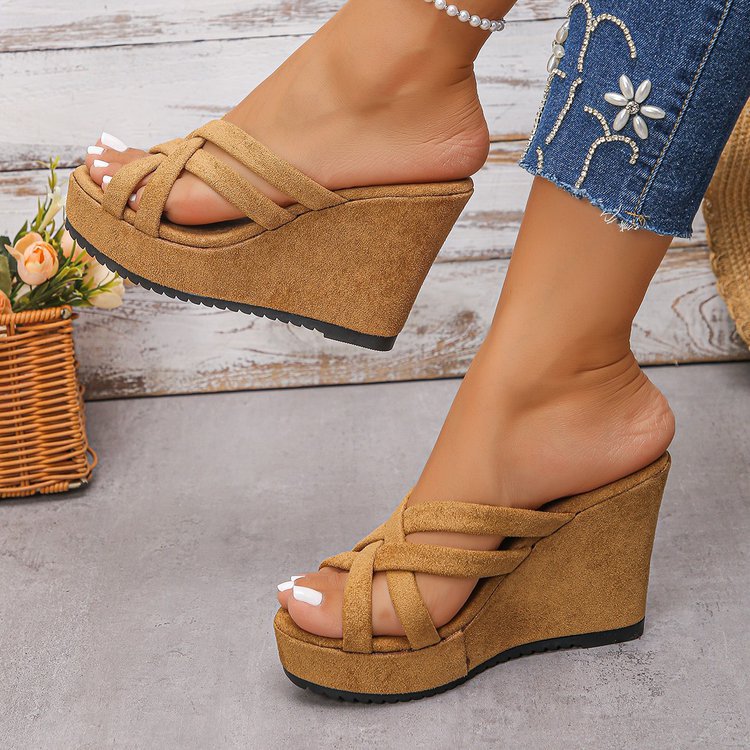 クロスボーダー大きいサイズ 2025 夏の新スタイルワンラインバックルローマン厚いヒールスエードサンダル女性の魚の口オープントゥハイヒールサンダル