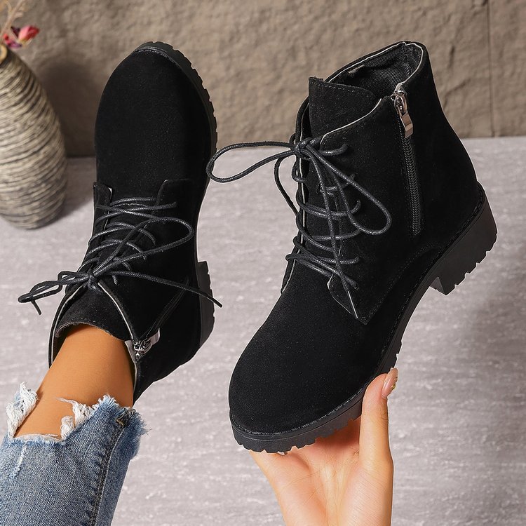 クロスボーダーの大きいサイズの女性の靴2024新型のレトロなショートブーツの女性の太さと丸い馬丁の靴の側のファスナーの英倫風の女性の靴