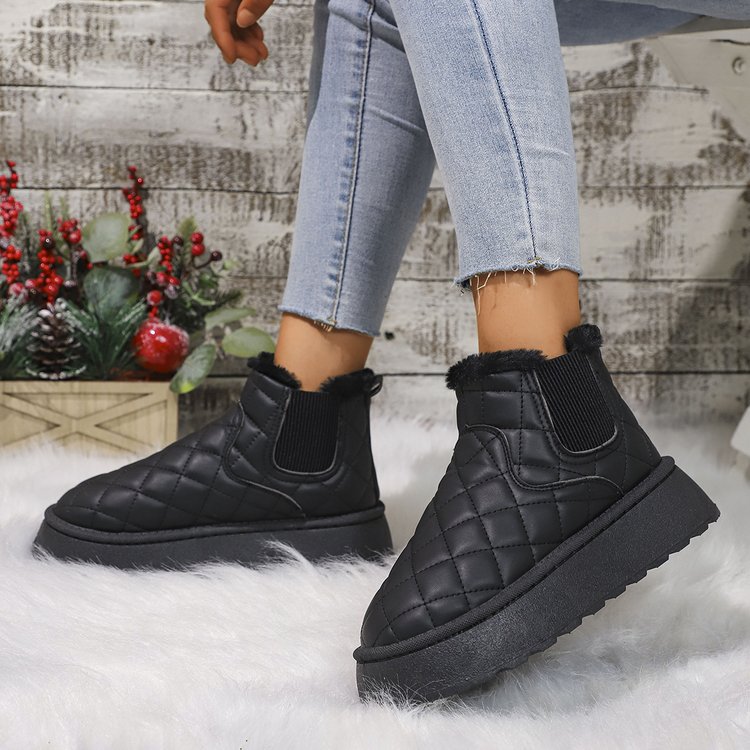 2024秋冬の新型の外国貿易の女性の厚い底の雪の靴の丸い頭の中で厚い毛の欧米の風格をプラスします。