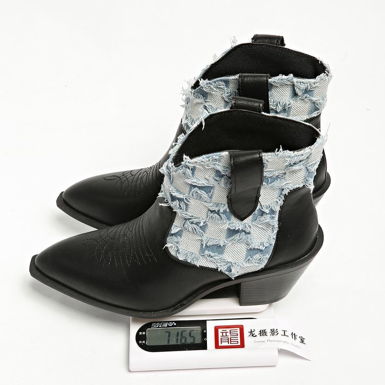 ショートブーツ女性2024秋冬新作欧米太ヒール後ファスナーファッション快適ハイヒールショートブーツ卸売り