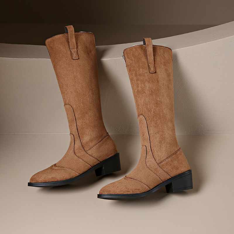 外国貿易の潮の西遇の長靴のカウボーイの靴の女性の2024の高筒の騎士の新型の秋冬の西部の復古の尖ったブーツ